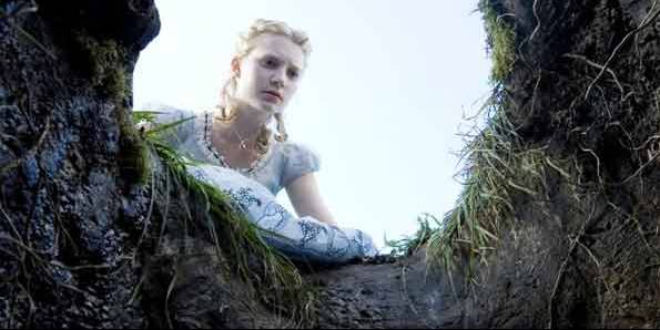 A câmera é apontada diretamente para cima, como em uma cena de Alice no País das Maravilhas dirigido por Tim Burton.